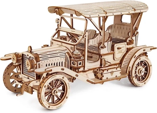 Il puzzle 3D in legno dell'auto storica di RoboTime è una fedele replica di veicoli d'epoca dell'era dell'ottone, ispirato ai veicoli degli anni '10 del 20° secolo. Parafango aerodinamico e linee eleganti richiamano l'aspetto delle carrozze trainate da cavalli, insieme a dettagli autentici come la leva del cambio e sedili confortevoli – tutto contribuisce all'unicità di questo modello.
