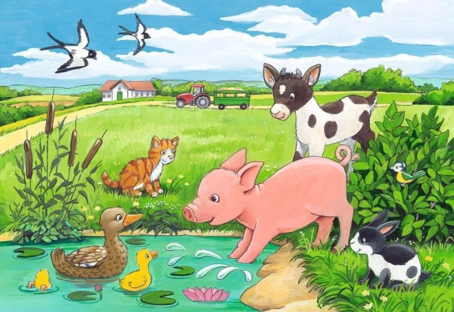 Il doppio set di puzzle per bambini Ravensburger Cuccioli di animali contiene 2 puzzle da 12 pezzi ciascuno, ideale per muovere i primi passi nel mondo dei puzzle. Lavorazione di qualità, tessere robuste e dimensioni 26 × 18 cm una volta completati, perfetti per bambini dai 3 anni.