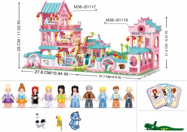 Il set di costruzioni Sluban Girls Dream Villa Cinese rappresenta un mondo affascinante che il tuo bambino può creare ed esplorare. Questo set contiene 1210 pezzi di eccellente qualità ed è parte della popolare serie Girl's Dream.