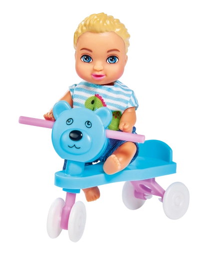 • Dotazione completa: lettino, seggiolone, passeggino 2 in 1, marsupio/porta-bebè, cavalcabile/monopattino, giochi, biberon, stovigliette, ciuccio e massaggiagengive.