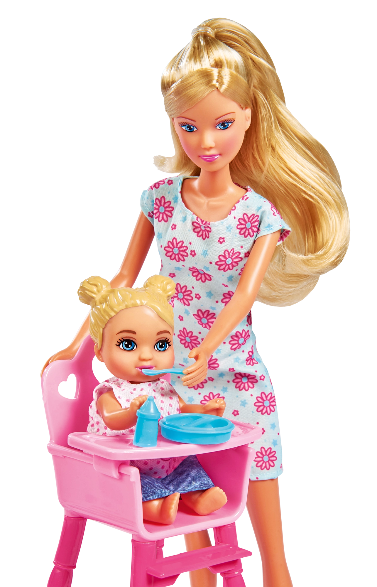 La popolare bambola STEFFI si presenta come una mamma premurosa con tre bebè e un ricco equipaggiamento per la cameretta. Grazie al passeggino 2 in 1 (navicella + versione sportiva), al lettino, al seggiolone e a pratici accessori, i bambini possono giocare tutte le situazioni quotidiane: dalla pappa alla nanna fino alle gite.