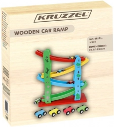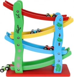 Il set include uno scivolo in legno con 4 piste di diversi colori e 4 macchinine. Tutto è realizzato in legno, garantendo un elevato standard di sicurezza.
