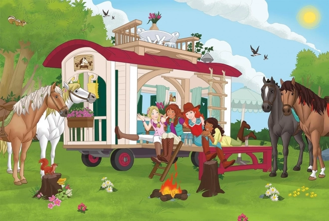 Immergiti nel mondo SCHLEICH con il colorato puzzle del brand SCHMIDT, che cattura l’atmosfera del falò presso la caravan. Grazie ai 100 pezzi tagliati con precisione, l’assemblaggio è divertente e sviluppa motricità fine, pazienza e immaginazione. La confezione include inoltre una figurina originale del puledro Hannover Schleich, che farà felice ogni piccolo amante dei cavalli.
