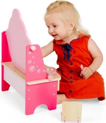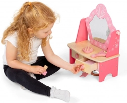 Questo elegante tavolino da trucco rosa conquisterà tutte le piccole vanitose. Grazie al legno di qualità e alla lavorazione accurata è stabile e sicuro, mentre i delicati dettagli floreali donano un tocco di magia alla cameretta. Lo specchio facilita i rituali quotidiani e i due cassetti offrono spazio sufficiente per tutti i tesori.