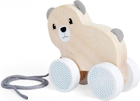 Questo orsetto trainabile in legno, con orecchie e coda in feltro, motiva i bambini al movimento e sviluppa la coordinazione occhio–mano e la motricità grossa. Grazie alle dimensioni compatte si impugna comodamente e scorre senza sforzo su superfici piane.
