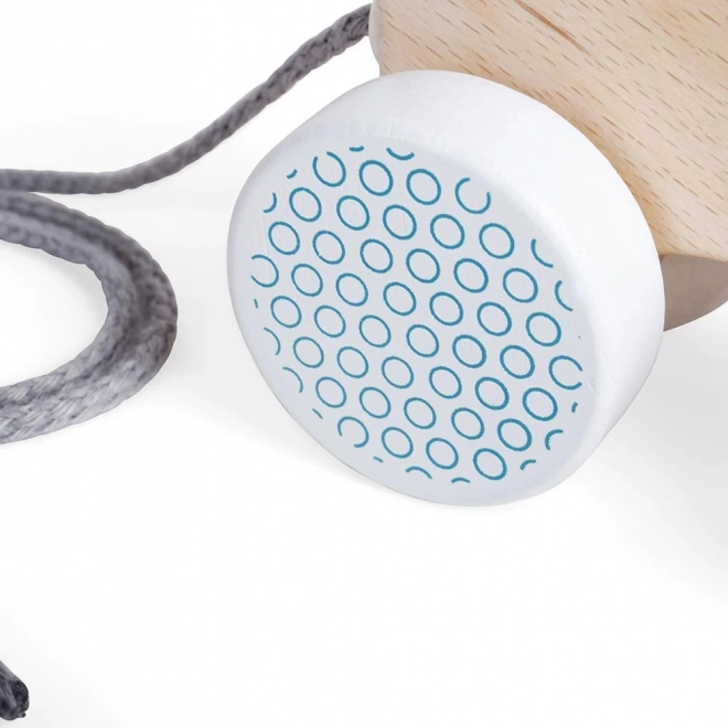 Il giocattolo è realizzato in legno certificato FSC, quindi giocando si sostiene la gestione responsabile delle foreste. Le finiture superficiali sono atossiche e sicure per i bambini. Il cordino grigio è morbido al tatto e si impugna piacevolmente dalle manine.