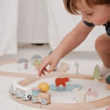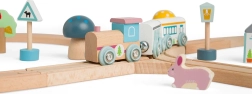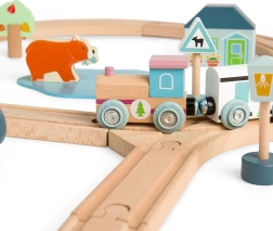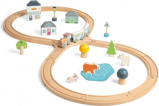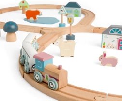 Questa pista ferroviaria in legno al limitare del bosco offre ai giovani esploratori infinite possibilità di gioco creativo. Il tracciato a forma di otto passa accanto a graziose amanite, pini e animali del bosco, così come accanto a una caffetteria o a una panetteria. L’alta qualità costruttiva e il design robusto garantiscono lunga durata e tanto divertimento.
