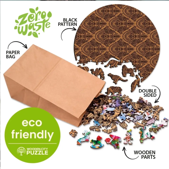 I puzzle in legno di WOODEN CITY offrono divertimento con pezzi dal design originale che rappresentano una sfida maggiore rispetto ai puzzle classici. Ogni pezzo è evidenziato al laser e alcuni hanno la forma di animali, rendendoli piccole figure a sé stanti.
