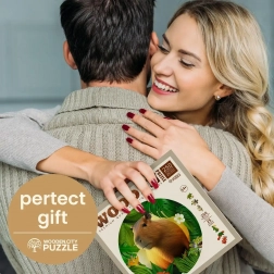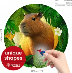 I puzzle in legno WOODEN CITY con motivo della capibara offrono un’esperienza di montaggio unica. I pezzi speciali, alcuni dei quali a forma di animali, conquisteranno ogni amante dei puzzle originali. I dettagli evidenziati al laser danno profondità all’immagine e i singoli pezzi sagomati possono stare in piedi da soli come piccole figurine.
