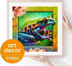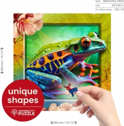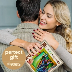 Puzzle in legno Rana colorata del marchio WOODEN CITY offre divertimento con pezzi di forma unica. I dettagli tagliati al laser creano magiche forme animali e senza involucri di plastica, questo puzzle è ecologico.