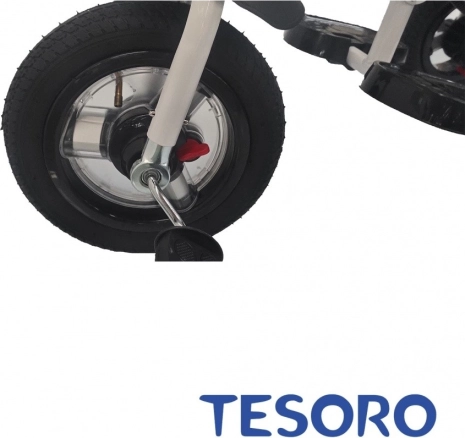 Triciclo per bambini TESORO è un'ottima alternativa al passeggino, grazie al sedile comodo con schienale, ruotabile a 360 gradi. Il bambino può viaggiare rivolto verso i genitori. La grande cappottina pieghevole protegge dal sole e offre molto spazio per piccoli oggetti.
