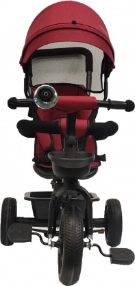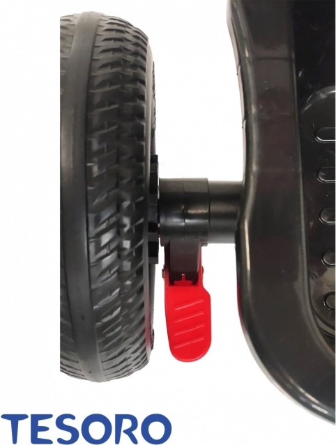 Il triciclo è dotato di freno a mano e cavalletto per un facile parcheggio. Il design moderno nella combinazione di colori nero e rosso è attraente per bambini e genitori, mentre lo stile retrò con ruote da 10 pollici assicura una guida fluida e confortevole.