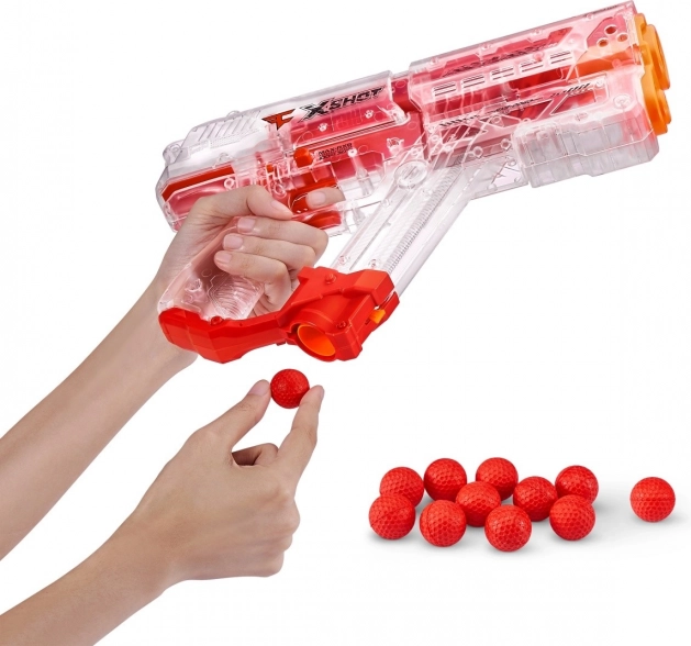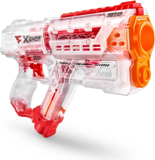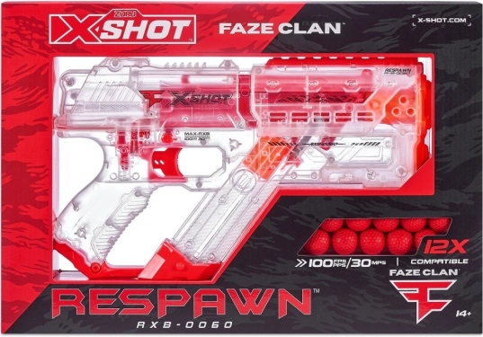 Con il blaster X-Shot FaZe Respawn sei nel cuore dell'azione e-sport. Questo giocattolo unico combina il mondo di gioco dell'e-sport con la qualità e la lavorazione del marchio X-Shot. Sorprendi gli avversari con il tuo elegante design trasparente, che ti consente di osservare il meccanismo interno del blaster. X-Shot FaZe Respawn è progettato per sparare palline speciali a una velocità fino a 30 metri al secondo. Divertimento e adrenalina sono garantiti!