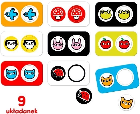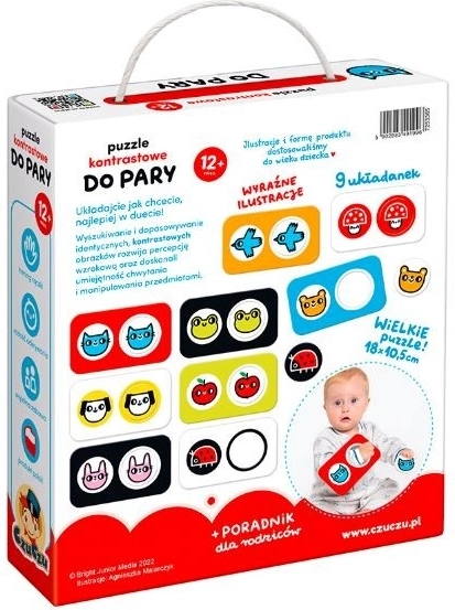 Abbinare le coppie è un ottimo modo per sviluppare la percezione visiva, la coordinazione occhio–mano e la concentrazione. Le immagini in bianco e nero a contrasto e dai colori vivaci con temi amati dai bambini aiutano i più piccoli a riconoscere facilmente le forme e ad abbinare gli stessi soggetti. Le tessere sono grandi, robuste e piacevoli da tenere nelle manine.