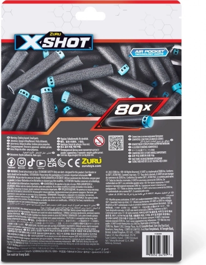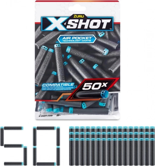 Con questo pratico set di ricarica da 50 frecce non perderai mai nessuna occasione! Le frecce X-Shot con tecnologia Air Pocket sono progettate per tiri più lontani, più rapidi e più precisi. Le frecce X-Shot sono compatibili con la maggior parte dei principali marchi e offrono le migliori prestazioni grazie all’incredibile tecnologia della schiuma leggera! Fornite con custodia richiudibile per una facile conservazione dopo la battaglia.