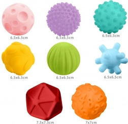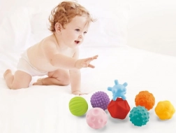 Set di 8 palline sensoriali schiacciabili per bambini da 6 mesi in morbido silicone. Le diverse texture e colori favoriscono lo sviluppo della motricità fine, la stimolazione del tatto e della vista e offrono un gioco sicuro e divertente ogni giorno.