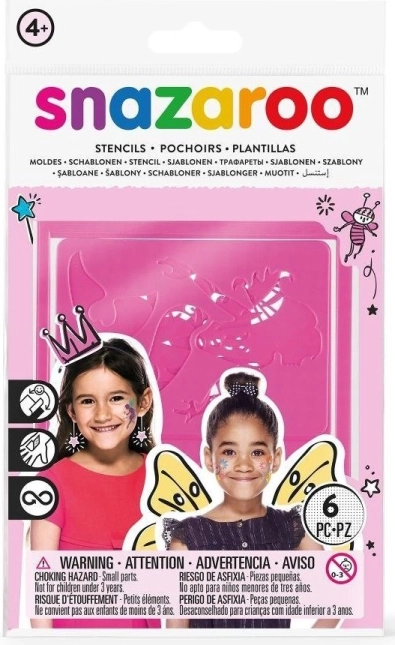 Scopri una pittura facciale facile e precisa con gli stencil SNAZAROO. Il set di 6 stencil con motivi di principesse, farfalle e fate garantisce una creazione rapida e pulita dei disegni. Grazie al retro adesivo restano fermi al loro posto, il materiale flessibile si adatta alle curve e gli stencil sono lavabili e riutilizzabili.