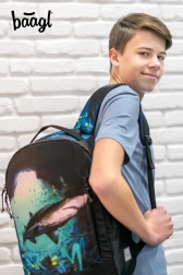 Scopri comfort e stile sostenibile con lo zaino BAAGL eARTh – Squalo by LUKERO. Grazie al materiale impermeabile 100% riciclato, la tua attrezzatura resta al sicuro con qualsiasi meteo, mentre la grafica accattivante con motivo dello squalo cattura subito l’attenzione.