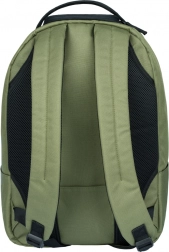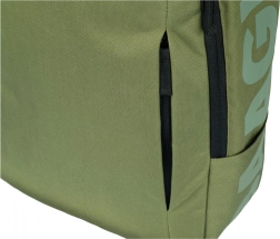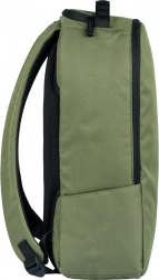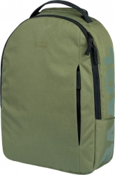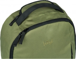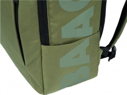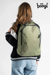 Elegante zaino urbano BAAGL eARTh in colore khaki, realizzato in materiale impermeabile 100% riciclato. Offre schienale ergonomico, spallacci regolabili, tasca imbottita per laptop da 15" e pratiche tasche anteriori e superiori con zip. Con peso ridotto di 500 g, volume di 18 l e portata fino a 7 kg è ideale per scuola, città e lavoro.