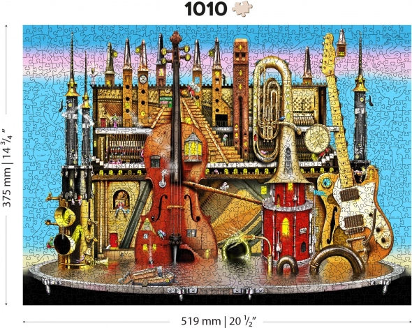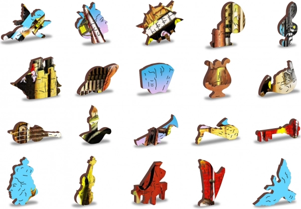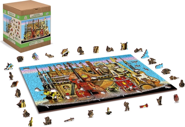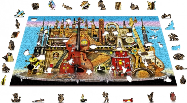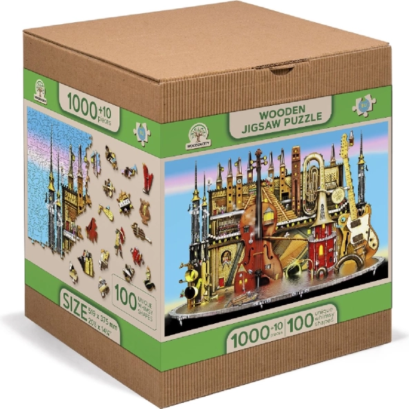 Questo puzzle in legno premium propone un originale motivo di città musicale con strumenti e torri, amato da adulti e bambini curiosi. I pezzi sono tagliati al laser da resistente pannello HDF (3–4 mm), con bordi lisci senza schegge, e una parte di essi ha forme speciali di animali, edifici e oggetti. Grazie a ciò, il montaggio è più impegnativo ma al tempo stesso estremamente divertente e visivamente d’impatto.