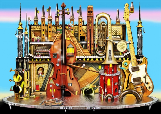 Assemblate seguendo il motivo colorato della città musicale oppure scegliete la sfida e componete solo in base alle forme sul lato posteriore.