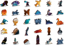 - con pezzi dal design unico che rappresentano famose costruzioni, oggetti o animali in base al tema del motivo