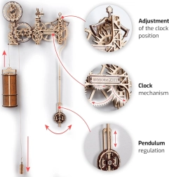 Set di puzzle 3D per creare un affascinante orologio steampunk funzionante con pendolo, che risalterà splendidamente sulla parete. Assembla tutti i pezzi e i meccanismi e osserva come funzionano. Quando avrai finito, scienza e arte si fonderanno in un’opera decorativa unica. L’orologio da parete WOODEN CITY Steampunk è un regalo insolito per gli amanti della bellezza e delle sorprese.