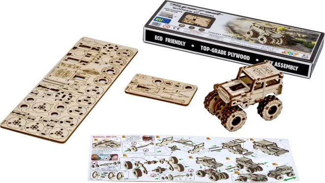 Il puzzle meccanico 3D offre divertimento per tutta la famiglia e stimola il pensiero creativo. Una volta montato, otterrai una suggestiva miniatura di monster truck che diventerà una decorazione originale per molti anni. I pezzi in multistrato di betulla sono tagliati con precisione e combaciano perfettamente, rendendo la costruzione fluida e senza bisogno di colla.