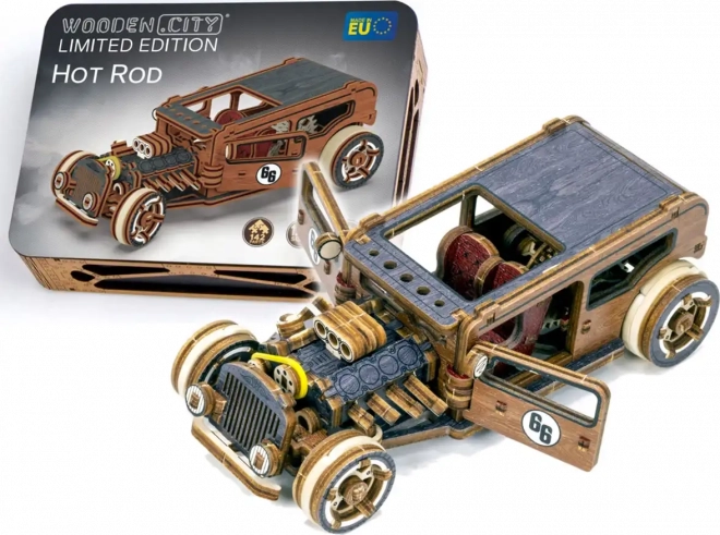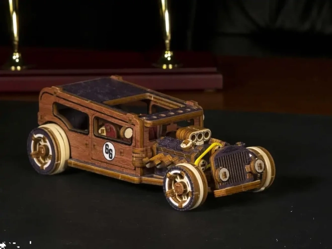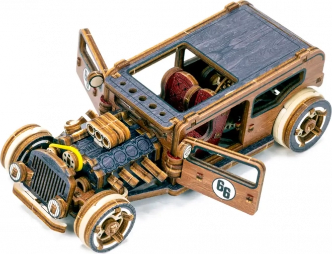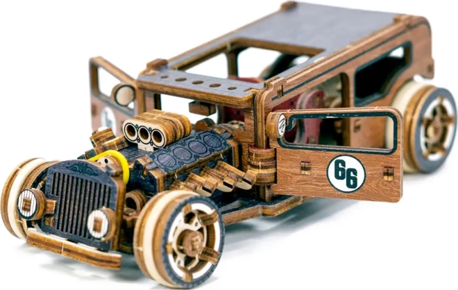 Assembla un iconico hot rod americano come modello funzionante in legno, realizzato in compensato di betulla di alta qualità. Senza colla né attrezzi creerai un puzzle 3D dettagliato con meccanismo a volano, porte apribili, ruote anteriori sterzanti e motore realistico. Un regalo ideale per gli amanti delle auto classiche e dei kit meccanici.
