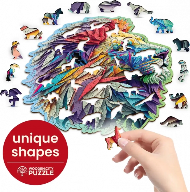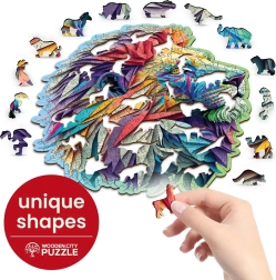 Concediti un’esperienza di montaggio originale con il puzzle in legno Leone moderno di WOODEN CITY. I pezzi sagomati in modo speciale, alcuni dei quali a forma di animali, creano una composizione suggestiva con dettagli messi in risalto dal taglio laser. Alcuni pezzi possono stare in piedi da soli come piccole figurine.