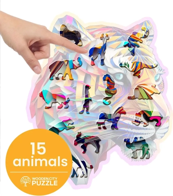 Goditi il montaggio di un originale puzzle in legno con il motivo della tigre colorata di WOODEN CITY. Grazie ai pezzi unicamente sagomati, incluse silhouette di animali, e alla lavorazione laser di precisione, questo puzzle offre una maggiore difficoltà e un’esperienza fantastica. Il puzzle è eco‑friendly, senza imballaggi in plastica, ed è un ottimo regalo per ogni occasione.