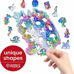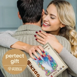 Il puzzle in legno di design con motivo unicorno del brand WOODEN CITY offre un'esperienza fantastica per gli amanti dei rompicapi originali. I pezzi tagliati al laser con dettagli evidenziati si assemblano piacevolmente e alcuni hanno la forma di animali, che possono essere posizionati anche separatamente come piccole figurine.