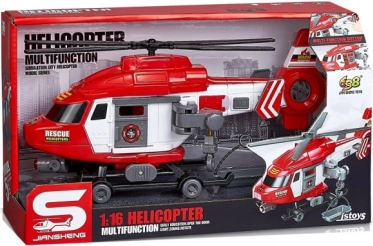 Vivi l'emozione del salvataggio aereo con il nostro elicottero dei vigili del fuoco in scala 1:16. Grazie alla propulsione a inerzia, questo elicottero si muove da solo, garantendo un grande divertimento. Effetti sonori e luminosi realistici offrono un'esperienza autentica dell'azione. Le batterie 3xAG13 sono già incluse nella confezione, quindi l'elicottero è pronto per l'uso immediato.