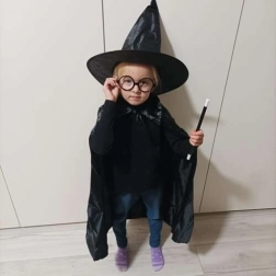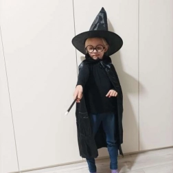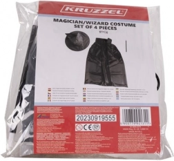 Questo elegante costume da mago offre tutto ciò di cui i bambini hanno bisogno per creare un travestimento d’effetto e sicuro. Il mantello leggero in materiale piacevole cade con eleganza e, grazie al laccio, rimane ben fermo. Il cappello a punta, una volta estratto, si apre da solo creando un effetto “wow”. Gli occhiali rotondi senza lenti sono comodi e sicuri durante il gioco, mentre la bacchetta in plastica resistente completa alla perfezione ogni trucco.