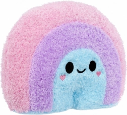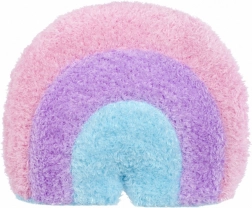 Giocattolo di peluche a forma di arcobaleno con colori rosa, viola e blu e un sorriso accogliente. Ideale per decorazioni o come compagno di coccole per i bambini.
