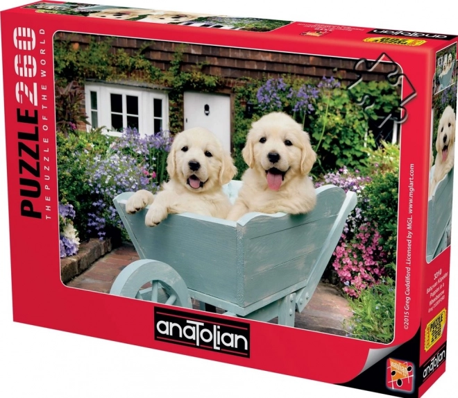 Puzzle adorabile con il motivo dei cuccioli nel carretto, perfetto per ogni amante degli animali. Contiene 260 pezzi e, una volta composto, misura circa 48 × 33 cm. Lavorazione di qualità per un incastro preciso e una composizione rilassante. Il produttore ANATOLIAN offre inoltre il servizio di invio del pezzo mancante (previo rispetto delle condizioni).