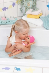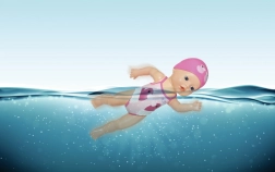 La dolce bambola nuotatrice BABY born My First Swim Girl da 30 cm è creata per giocare nella vasca da bagno e in piscina. Grazie alla struttura impermeabile e al corpo leggero nuota e si muove nell’acqua, stimolando fantasia e motricità fine dei bambini dai 12 mesi. I colorati costumino e cuffietta la rendono l’amica ideale per il divertimento quotidiano del bagnetto.