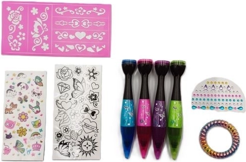 Scopri un modo semplice per mettere in risalto il tuo stile. Il set di pennarelli per tatuaggi con timbri Tattoo Studio consente di creare motivi temporanei sulla pelle, dai simboli delicati ai disegni audaci. Grazie ai timbri, chiunque può ottenere belle forme, e con gli stencil realizzerai design più complessi con linee pulite.
