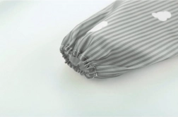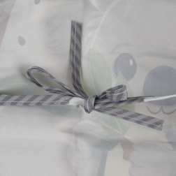 La capiente tasca frontale raccoglie briciole e gocce. La chiusura in velcro al collo e il laccetto sulla schiena assicurano una tenuta stabile.
