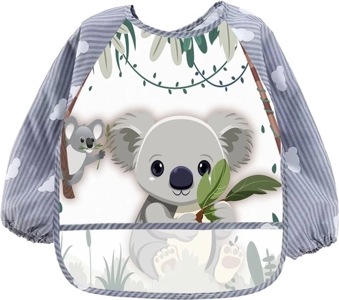 Cercate una bavetta che gestisca il disordine quotidiano a tavola e durante il disegno? Questa bavetta KRUZZEL leggera e resistente con un simpatico motivo koala offre una protezione completa da macchie e liquidi. Le maniche lunghe in materiale Oxford impermeabile e i polsini elastici mantengono le braccia del bambino asciutte e pulite.
