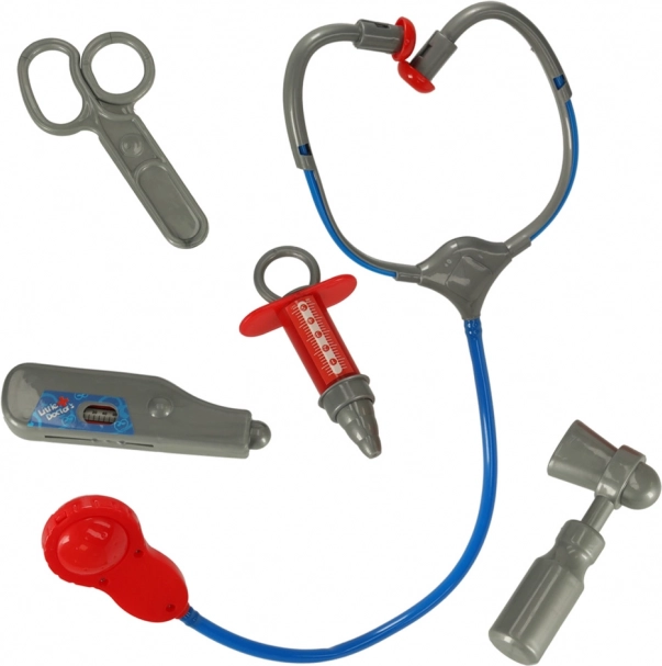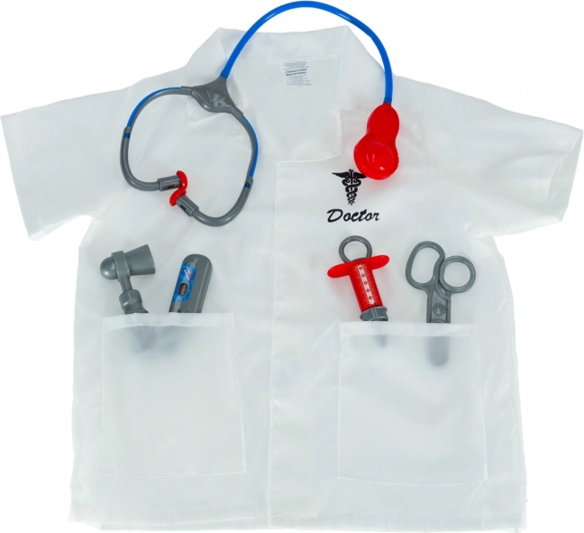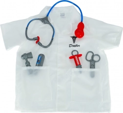 Include un camice medico e strumenti sanitari: stetoscopio, forbici, siringa, termometro e martelletto a riflesso.