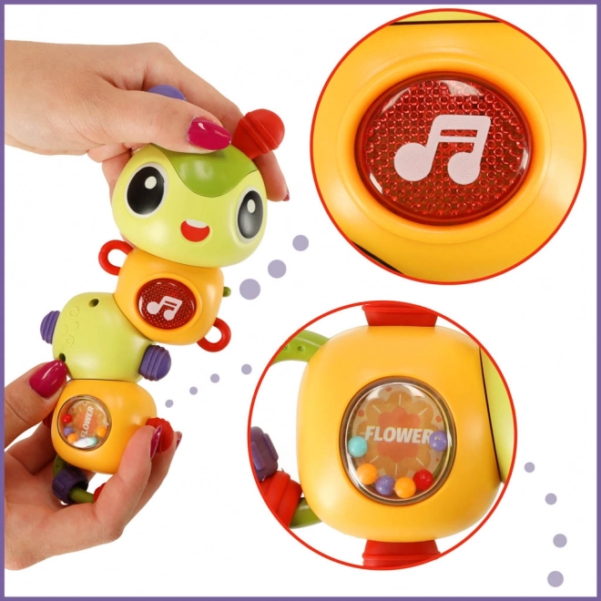 Questo bruco dai colori vivaci permette ai bambini di esplorare il mondo attraverso melodie felici ed effetti luminosi.