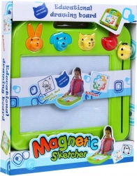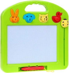 I bambini ameranno i 4 grandi timbri di animaletti (coniglio, cagnolino, gattino, paperotto), che arricchiscono la creatività. La penna tracciatrice con pratico cordino non si perde nemmeno nel pieno del gioco. La lavagna è progettata per sviluppare contemporaneamente immaginazione, concentrazione e coordinazione mano-occhio.