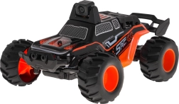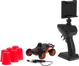 Il fuoristrada RC SHINE è leggero, agile e pronto all’azione. Con la videocamera Wi‑Fi sul tetto realizzi foto e video e puoi seguire l’immagine in tempo reale sul telefono fissato al supporto incluso sul radiocomando. Il controllo stabile è garantito dal telecomando a 2,4 GHz con regolazione della velocità e trim dello sterzo.