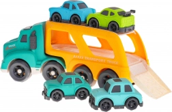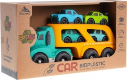 Divertente carro attrezzi con rimorchio e quattro macchinine in BIO plastica ecologica che entusiasmerà i bambini dai 18 mesi. Offre effetti luminosi, suoni realistici del motore, retromarcia e clacson e anche allegre melodie. Il rimorchio può essere staccato e il materiale robusto è sicuro, atossico e resistente. Le batterie 3× LR44 sono incluse nella confezione.