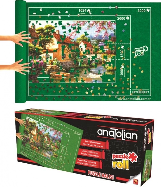 I contorni speciali per puzzle Anatolian sono stampati direttamente sul tappetino verde e includono varianti per 260, 500, 1000, 1500, 2000 e 3000 pezzi, compresi puzzle quadrati e panoramici.