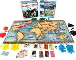 Salite a bordo del treno: Treno: Giro del mondo porta il gioco che tutti conosciamo in nuovi territori! Questa volta viaggeremo intorno al mondo e attraverso i Grandi Laghi del Nord America, il che significa vie d’acqua: preparatevi quindi a salpare!