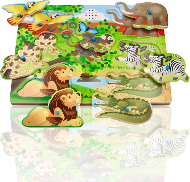 I puzzle sonori Animali dello Zoo sono un regalo ideale per i vostri bambini, che combina gioco e apprendimento. Con questo giocattolo divertente i bambini scopriranno i suoni di diversi animali: dai leoni agli elefanti.