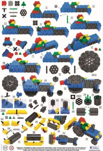 Le costruzioni Morphun offrono alcuni dei set di mattoncini più interessanti sul mercato. I prodotti di questo marchio sono pensati per bambini più grandi, che sanno già utilizzare i pezzi piccoli. Cambiano il modo di vedere il mondo delle costruzioni: rispetto ai classici mattoncini tradizionali, le possibilità sono molto meno limitate. Nel caso del set Junior Xtra sono disponibili elementi di collegamento aggiuntivi a forma di T e di L. Grazie a essi il bambino sviluppa il pensiero creativo ed esercita il trasferimento delle idee dalla fantasia alla realtà. Gli elementi includono anche ruote, che permettono di creare costruzioni tipicamente amate dai bambini. Se il tuo bambino non ha mai usato prima questo tipo di costruzioni, il manuale allegato con idee e ispirazioni lo aiuterà a realizzare i primi modelli.