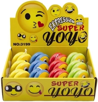 Classico yo-yo con motivo smile. Il giocattolo è adatto per allenare la coordinazione occhio-mano e sviluppare la motricità. Adatto dai 3 anni in su.